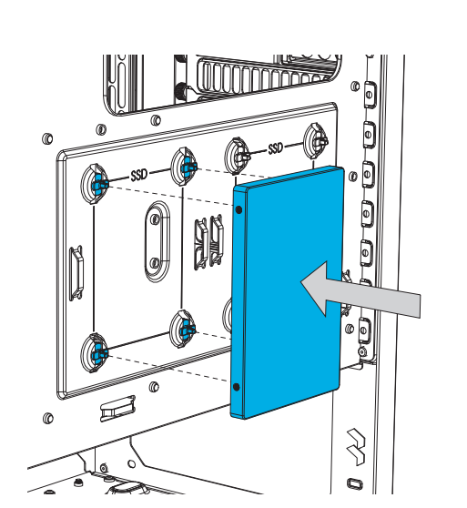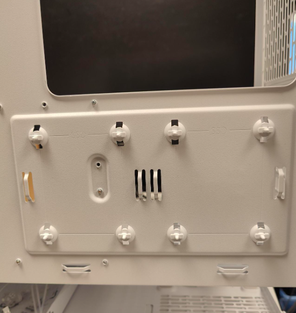 On the backside of the motherboard, there are 2x tool-less 2.5" mounts: