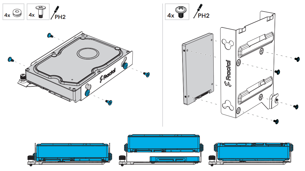 The case supports 3x 2.5" SSD and 1x 3.5" HDD simultaneously.