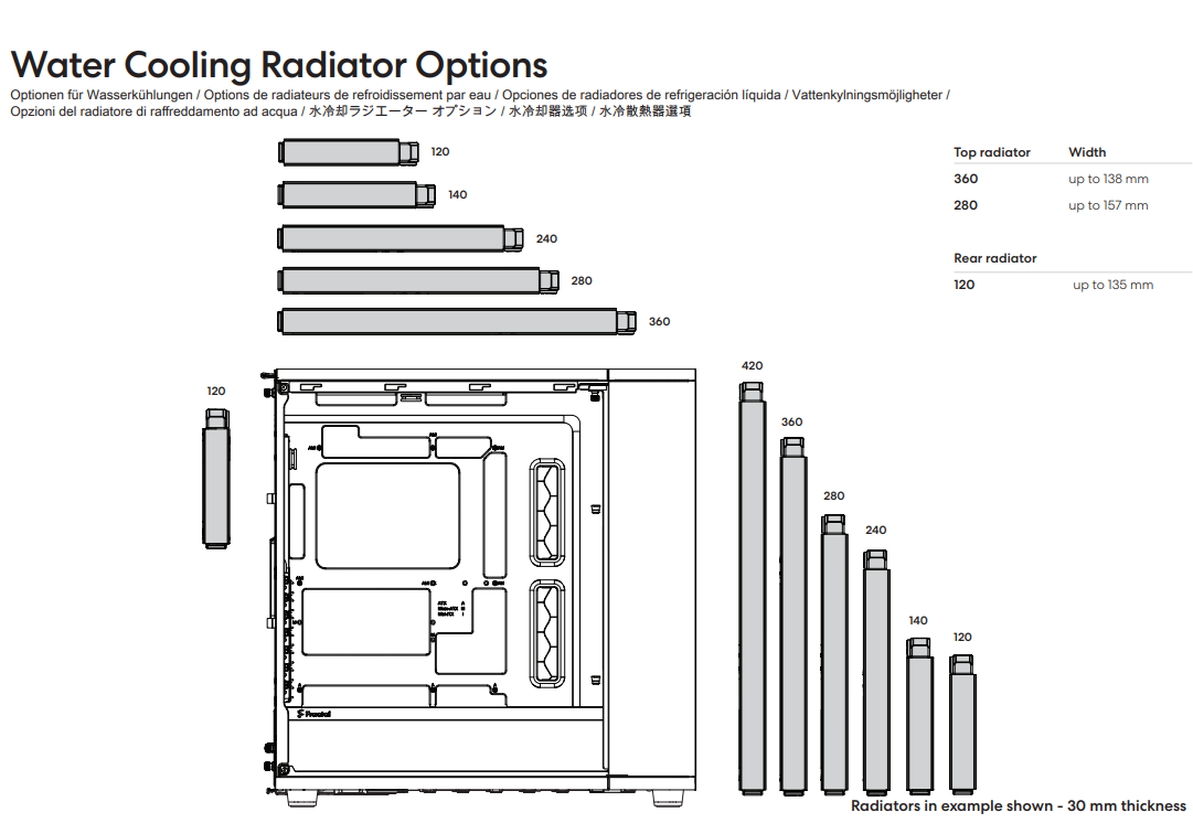 For front mounted 420 radiators, please note below size restrictions: