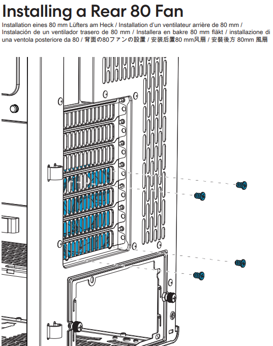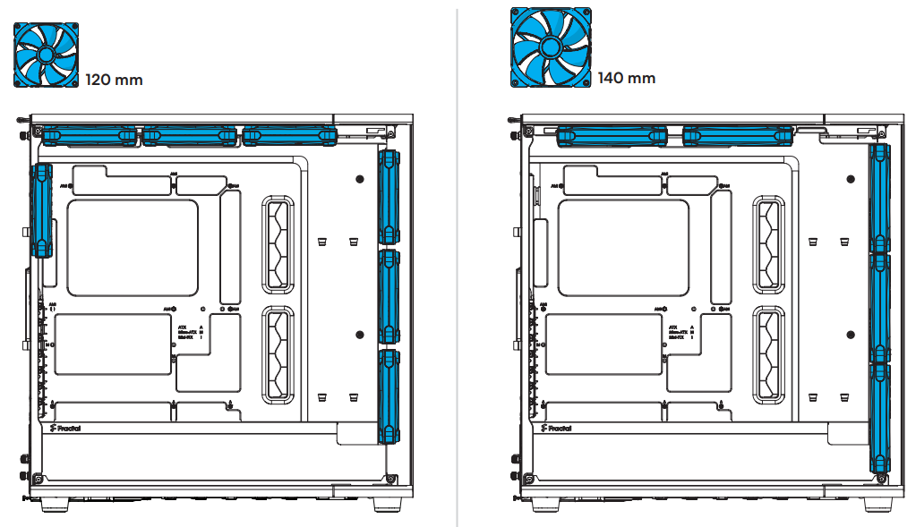 Rear: 1x 120mm AND 1x 80 mm fans (80 mm installed on PCI slot covers, dependent on GPU thickness, see below)