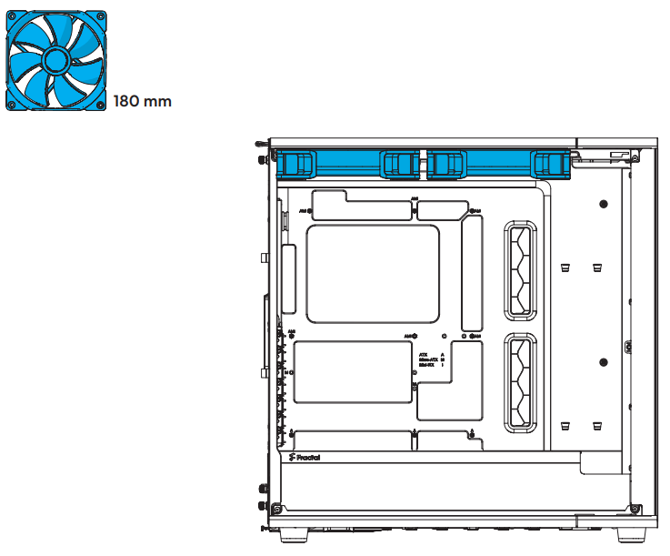 Top: 3x 120 mm OR 2x 140 mm OR 2x 180 mm fans
