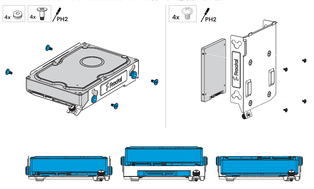The North ME has 1x dedicated 2.5" drive bracket supporting 2x 2.5" drives. Additionally, it has 2x combined 2.5"/3.5" drive brackets supporting 1x 3.5" and 1x 2.5" drive simultaneously.
